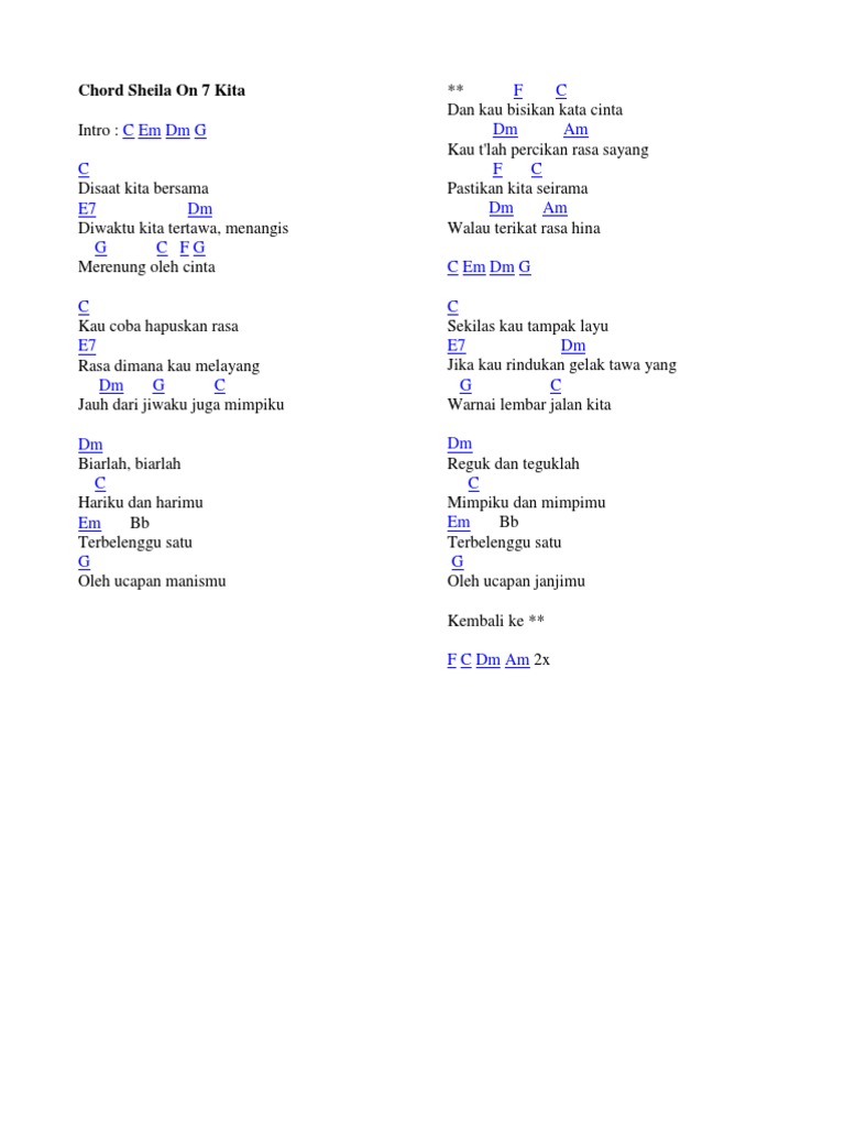 Berikut ini adalah chord atau kunci gitar beserta lirik salah satu lagu terbaik Sheila On 7 Terlalu Singkat yuk disimak.